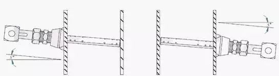 For vertical pipes, it can theoretically be installed within 360 degrees. For wet gas containing a lot of moisture, it is recommended that the sensor be installed with an upward inclination of 5 degrees, as shown in the left figure.